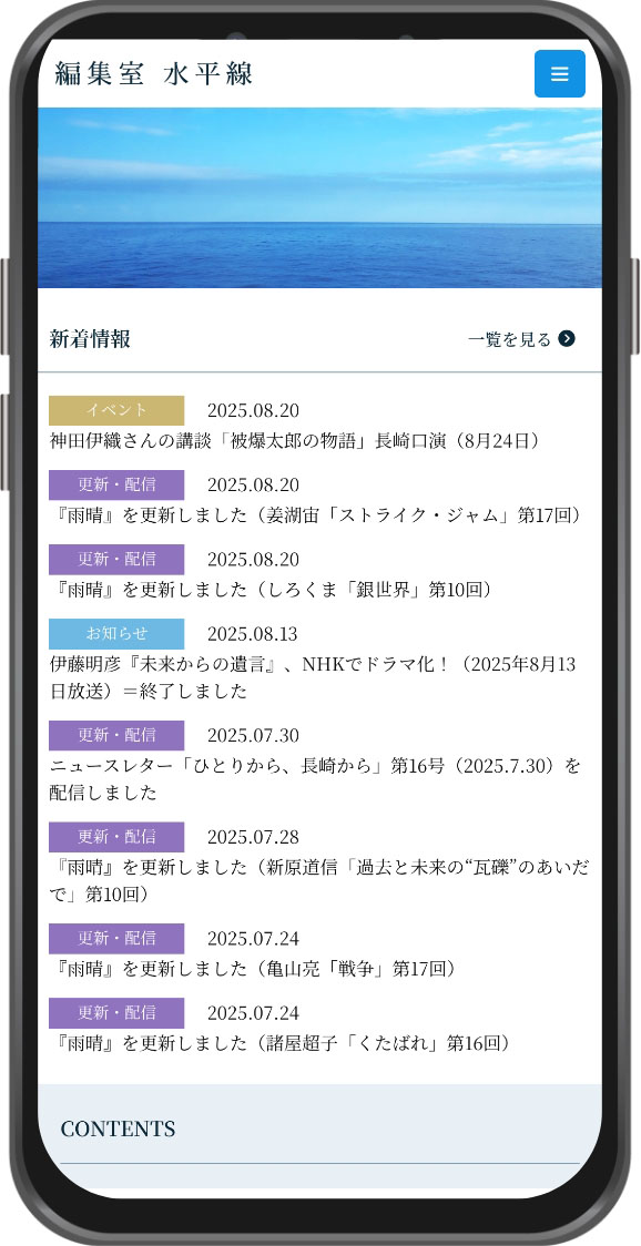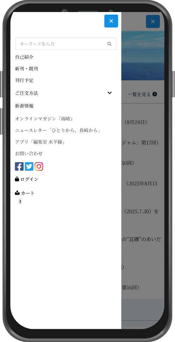 スマートフォンメニュー一覧を表示し、各ページへ直接アクセス可・レスポンシブデザインによる表示