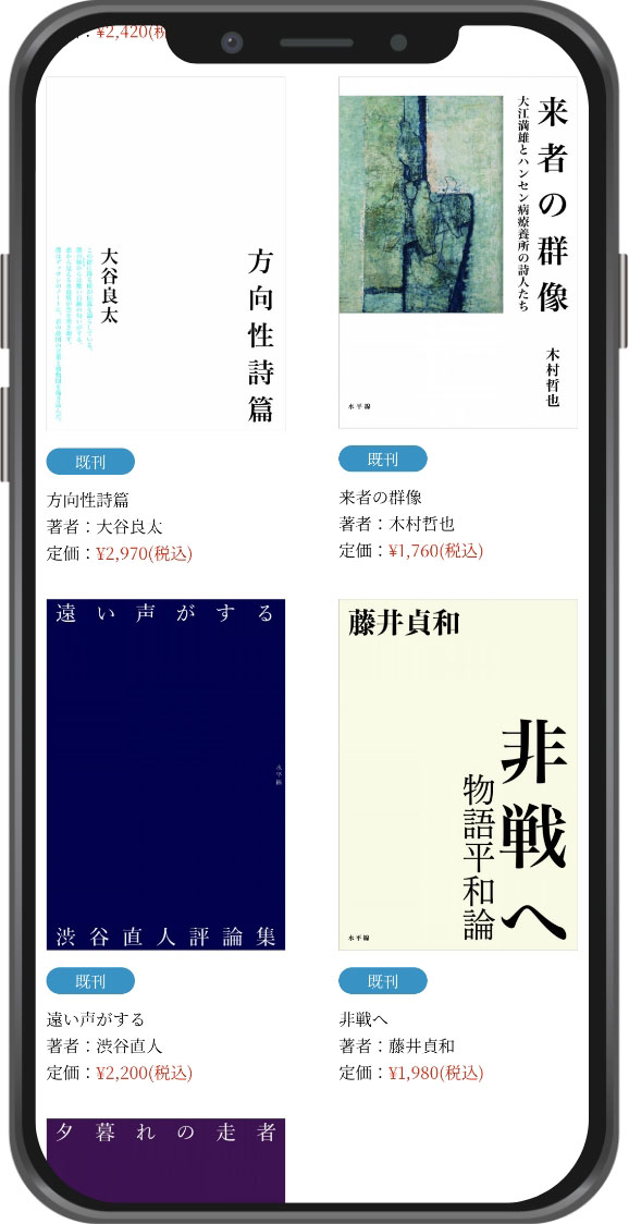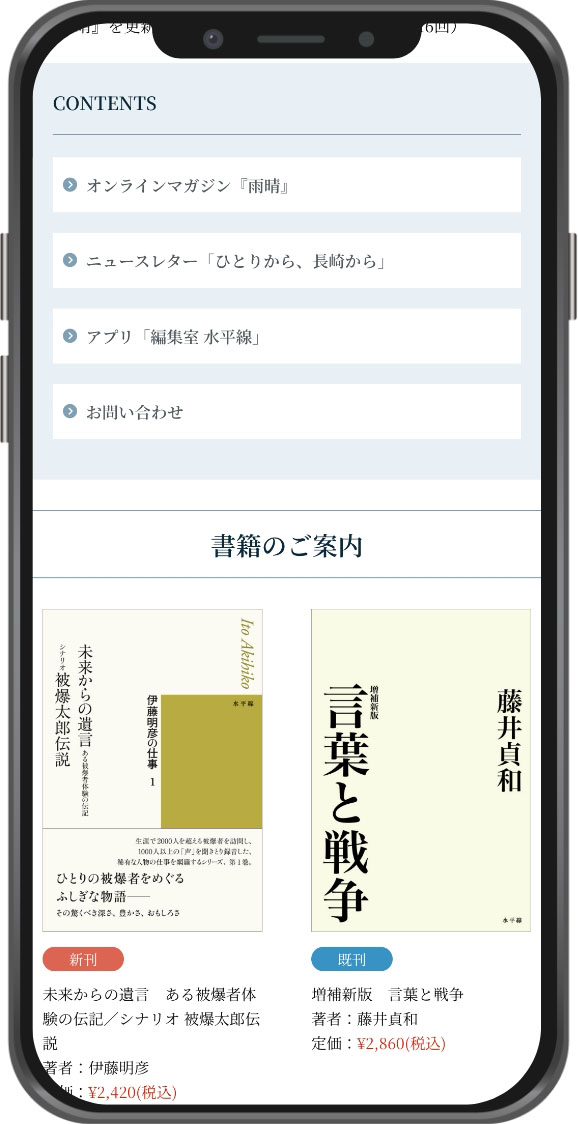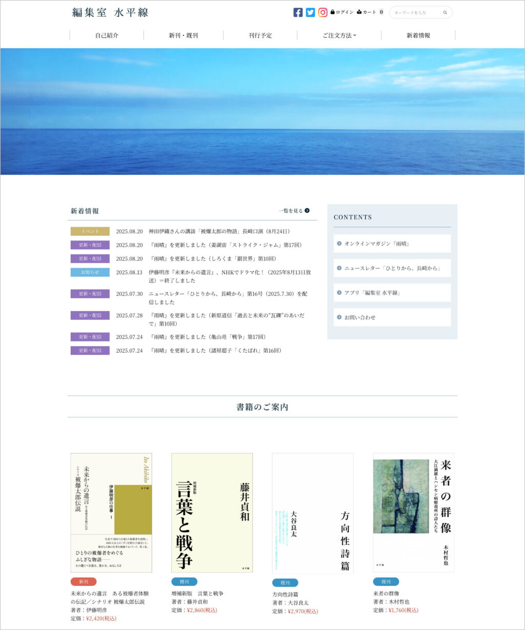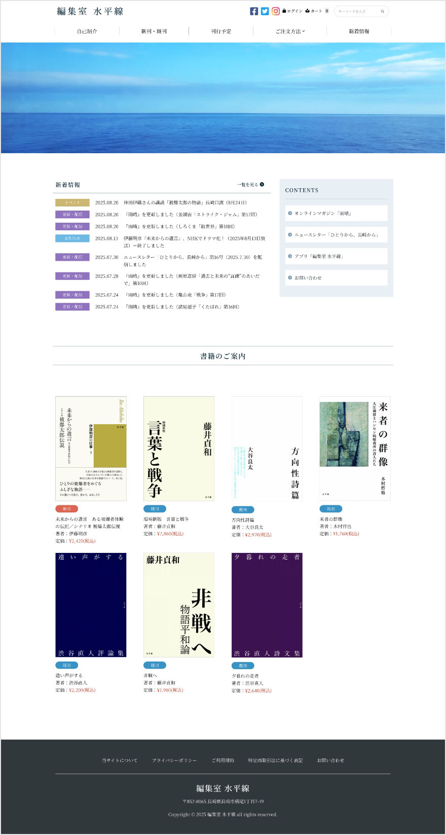 余白を活かしたデザインで、書籍紹介の文章や装丁写真が自然に映えるよう配慮しました。