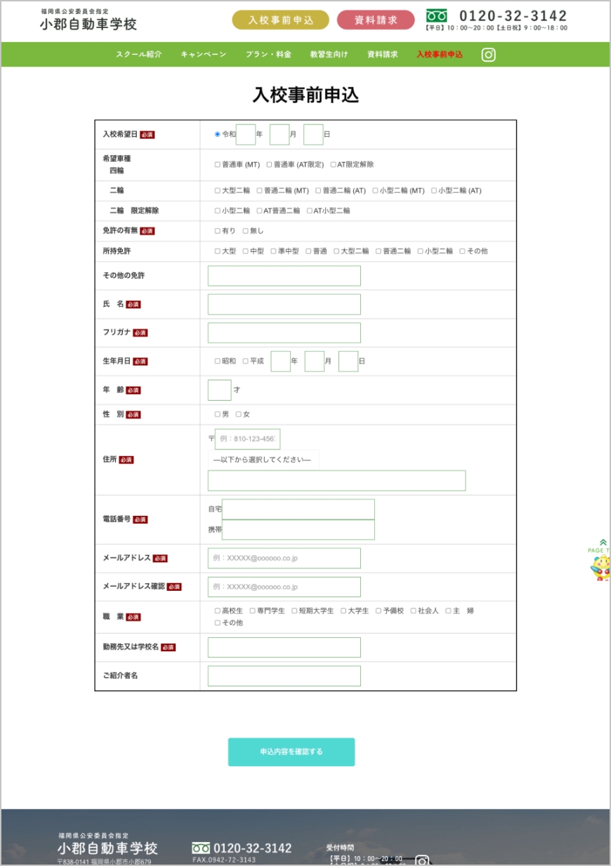 事前入校申込入力フォームを設置、定型様式へPDF出力